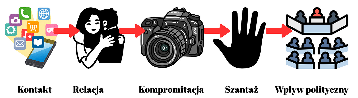 Materiały te są następnie wykorzystywane do szantażu finansowego, politycznego lub reputacyjnego.