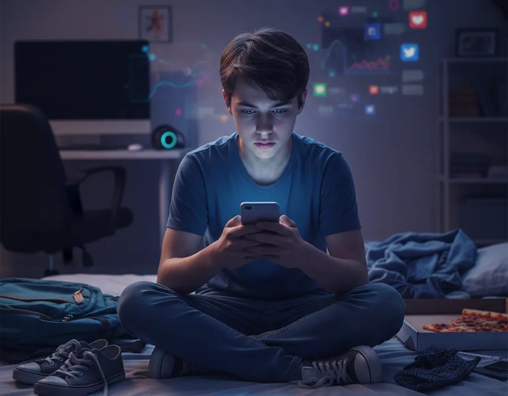 Współczesna młodzież jest pokoleniem cyfrowym, dla której smartfony i media społecznościowe stały się centralnym punktem życia. Obserwuje się rosnące zjawisko, w którym ambicją zawodową młodych ludzi jest kariera influencera, co świadczy o głębokiej fascynacji wirtualnym światem. Tak intensywne zanurzenie w cyfrowej rzeczywistości rodzi istotne pytania o wpływ na rozwój psychiczny i fizyczny dorastających osób. Zastanawiając się nad długoterminowymi konsekwencjami tego trendu, należy przeanalizować, jak funkcjonowanie w przeważającej mierze w wirtualnym świecie kształtuje ich psychikę i percepcję otoczenia. Niniejsza analiza ma na celu zbadanie szans i zagrożeń wynikających z tej transformacji, wskazując zarówno na potencjalne problemy psychiczne, jak i fizyczne dolegliwości, z którymi mogą zmagać się przyszłe pokolenia.