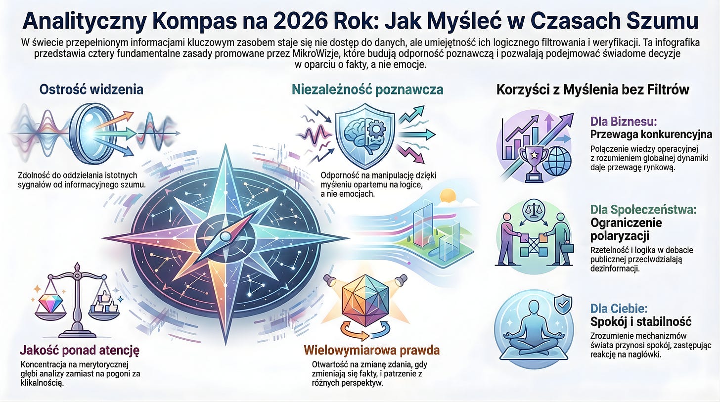O transformacji postaw poznawczych Odbiorców MikroWizji w obliczu zmieniających się faktów i globalnej dynamiki roku 2026. Kluczowym celem jest dostarczenie narzędzi do filtracji medialnego szumu i budowania odporności na manipulację.
