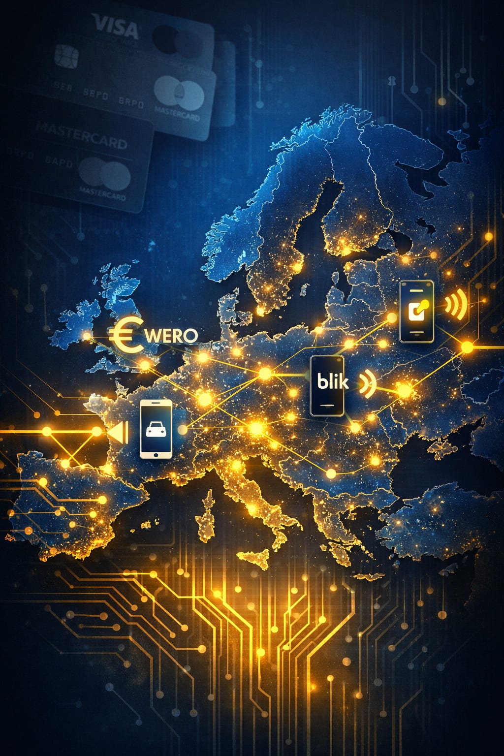 Równolegle do WERO rozwija się BLIK — polski system płatności mobilnych, który stał się jednym z najbardziej dynamicznych przykładów lokalnej alternatywy dla amerykańskich schematów. BLIK, mający ponad 17 mln aktywnych użytkowników w Polsce i miliardy transakcji rocznie, rozszerza swoją działalność na Europę poprzez integrację z systemami MB WAY, Bizum, Bancomat i Vipps w ramach EuroPA Alliance. Celem jest umożliwienie natychmiastowych przelewów transgranicznych na numer telefonu oraz stopniowe budowanie jednolitego rynku płatności mobilnych w UE.