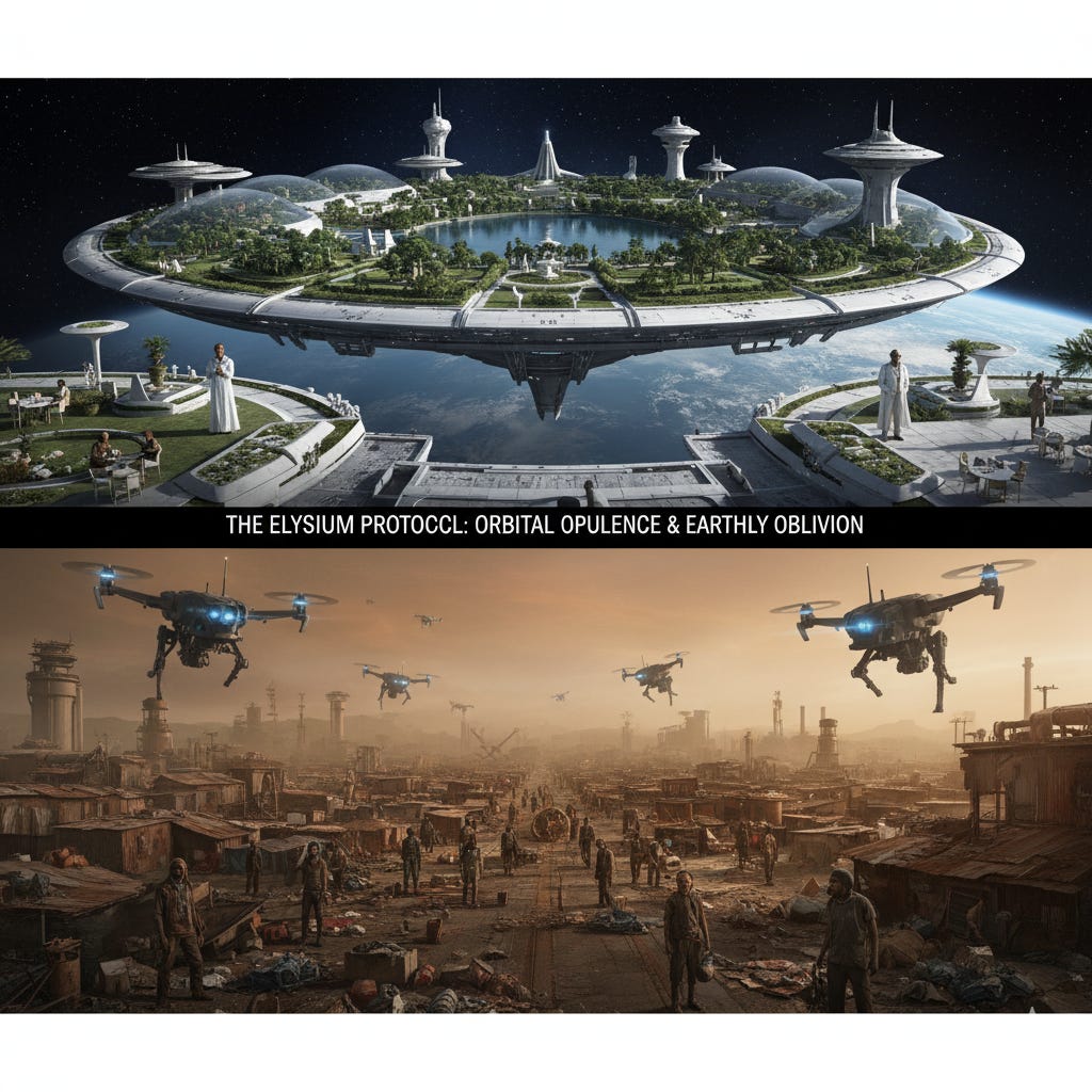 Jeśli nierówności na Ziemi staną się zbyt duże i niekontrolowane, najbogatsza elita może dążyć do przeniesienia się na inną planetę (np. Marsa lub stacje orbitalne).