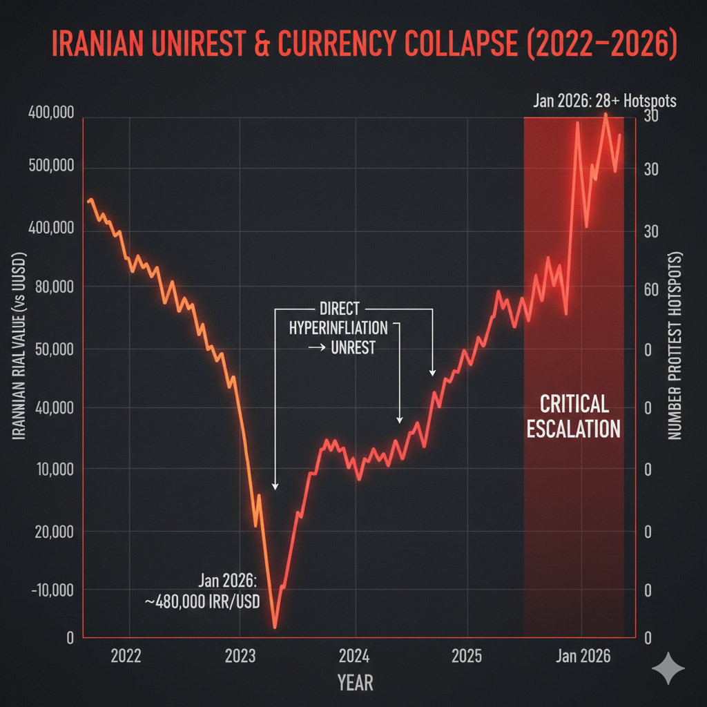 Trwające od 28 grudnia protesty różnią się od tych z lat ubiegłych. Katalizatorem była nie tylko ideologia (kwestia hidżabów), ale przede wszystkim ekonomia – inflacja przekraczająca 50% i załamanie waluty. Protestują już nie tylko studenci, ale i baza reżimu: sklepikarze (bazaris) oraz robotnicy sektora naftowego. Brutalność sił Basidż (tysiące aresztowanych, setki zabitych w ciągu dwóch tygodni) zamiast tłumić, radykalizuje ulicę. Pojawiają się doniesienia o pęknięciach wewnątrz struktur siłowych – lokalni dowódcy odmawiają strzelania do tłumów w mniejszych miastach.