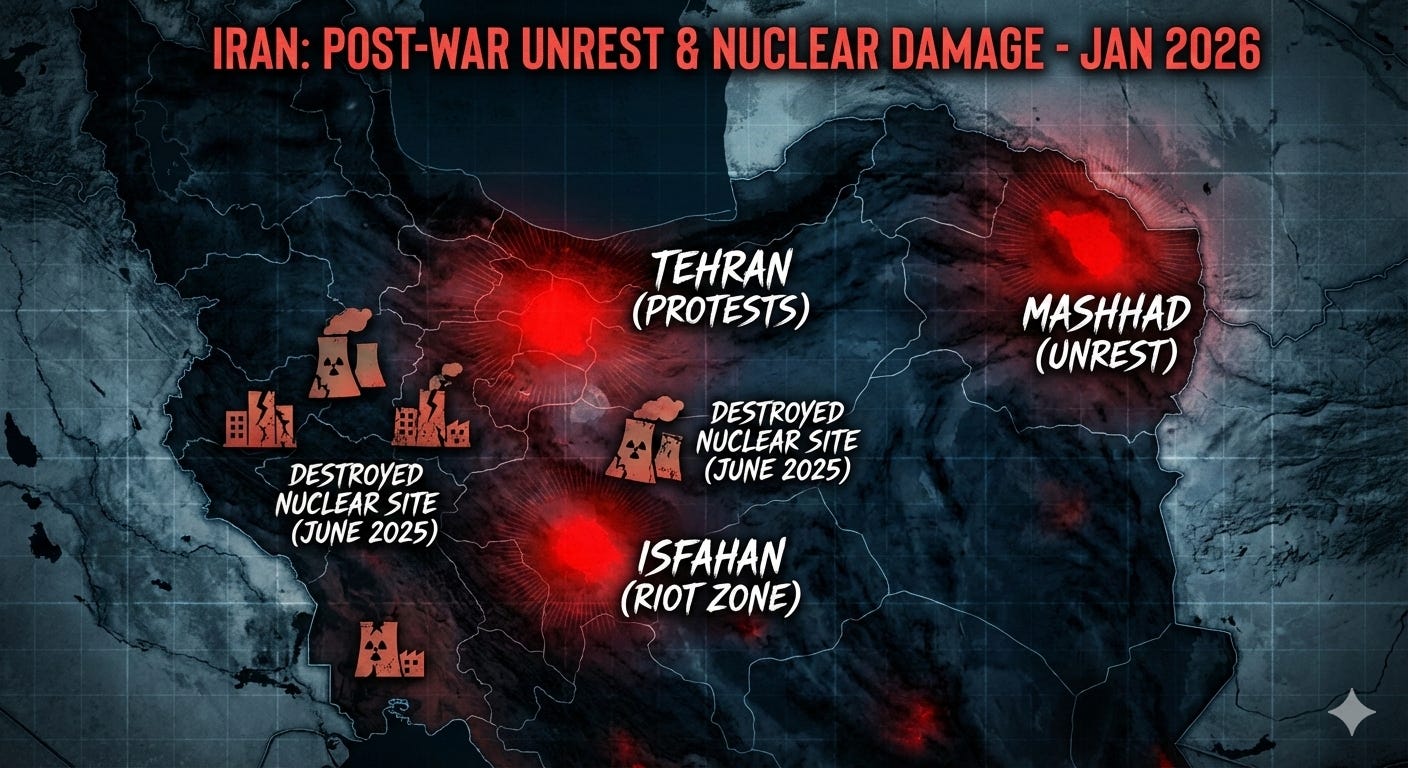 Iran znajduje się w punkcie krytycznym, którego nie widziano od rewolucji 1979 roku. Jesteśmy świadkami konwergencji trzech niszczycielskich sił: powojennej traumy po “Wojnie 12-dniowej” z czerwca 2025 r., hiperinflacji niszczącej klasę średnią oraz bezprecedensowej fali protestów, która wybuchła pod koniec grudnia 2025 r. W przeciwieństwie do poprzednich zrywów, obecna sytuacja to nie tylko bunt społeczny, ale walka o fizyczne przetrwanie reżimu w obliczu zniszczonej infrastruktury nuklearnej i presji administracji USA. To moment, w którym Teheran musi wybrać między totalną militaryzacją a kapitulacją, co zdefiniuje układ sił na Bliskim Wschodzie na dekady.