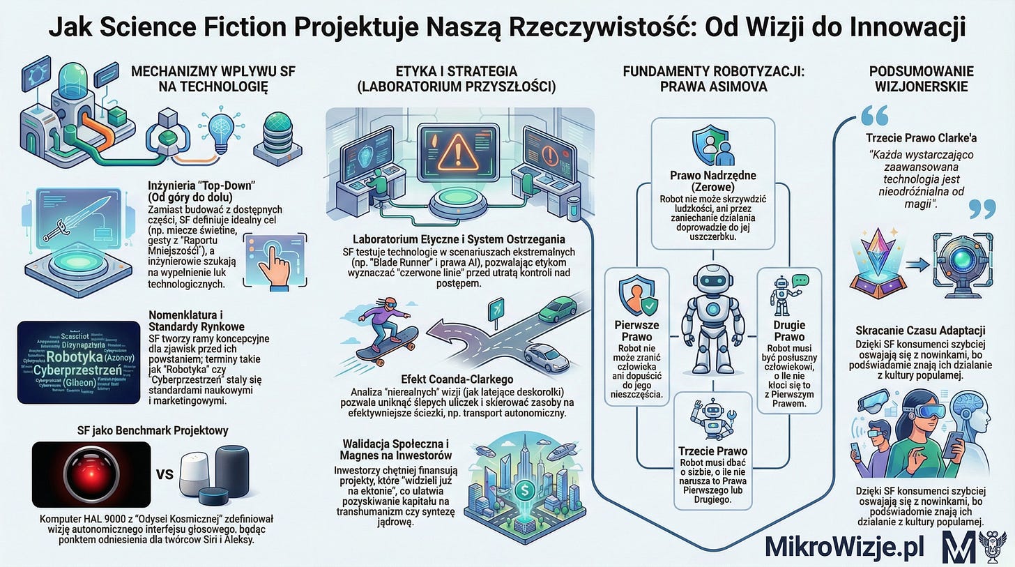 SF pozwala na strategiczną alokację zasobów. Widząc, co w fikcji okazało się niewykonalne lub nielogiczne, badacze mogą szybciej porzucić nieefektywne projekty na rzecz rozwiązań o wyższym potencjale rynkowym.
