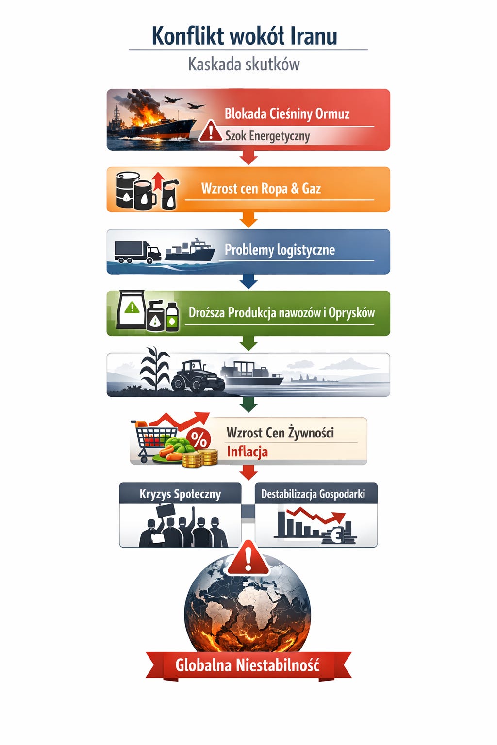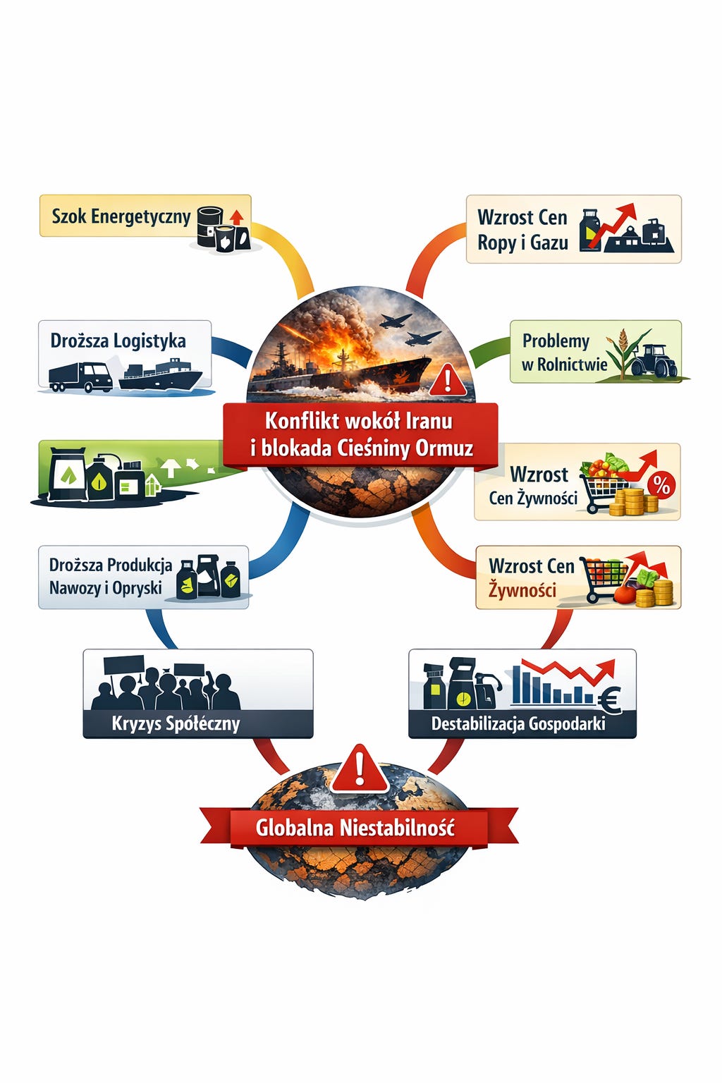 W rezultacie konflikt wokół Iranu i ryzyko blokady Ormuzu mogą stać się długotrwałym źródłem globalnej niestabilności, wpływając na energię, rolnictwo, inflację, politykę gospodarczą i bezpieczeństwo żywnościowe na wiele lat.