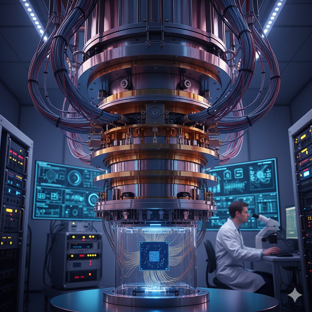 Wielkość i infrastruktura Systemy kwantowe wymagają zaawansowanej infrastruktury, w tym złożonych systemów chłodzenia (np. do temperatur bliskich zera absolutnego w przypadku kubitów nadprzewodzących) oraz precyzyjnej manipulacji, co czyni je wielkimi, stacjonarnymi i kosztownymi maszynami laboratoryjnymi.