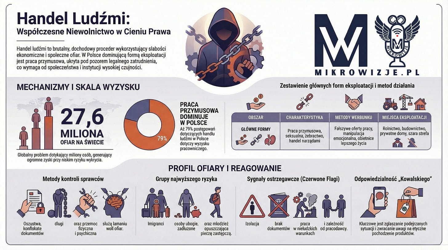 Polska zajmuje w tym procederze strategiczne i tragiczne miejsce: jesteśmy jednocześnie krajem pochodzenia ofiar, krajem tranzytowym oraz docelowym. Wyzysk ten jest mistrzowsko kamuflowany w sektorach, z których usług korzystamy wszyscy: