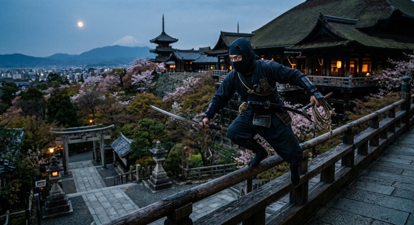 UWAGA: Niniejszy sygnał ma na celu ukazanie, jak głęboko współczesna popkultura — szczególnie kino lat 70. i 80. — zniekształciła historyczny obraz ninja, utrwalając w zbiorowej wyobraźni mit tajemniczego wojownika w czerni. Za tą atrakcyjną, lecz fikcyjną narracją krył się w rzeczywistości wysoko wyspecjalizowany agent, którego skuteczność opierała się na umiejętności przenikania do siedzib władców, prowadzenia rozpoznania, operacji psychologicznych, dezinformacji oraz sabotażu, a nie na otwartej walce. Analiza pokazuje, że nawet w XIII wieku kluczową kompetencją shinobi było gromadzenie i przetwarzanie informacji, a nie skrytobójstwo. Wbrew filmowym schematom ninja nie był samotnym wojownikiem eliminującym zastępy samurajów, lecz prekursorem współczesnych służb wywiadowczych i operacji specjalnych.