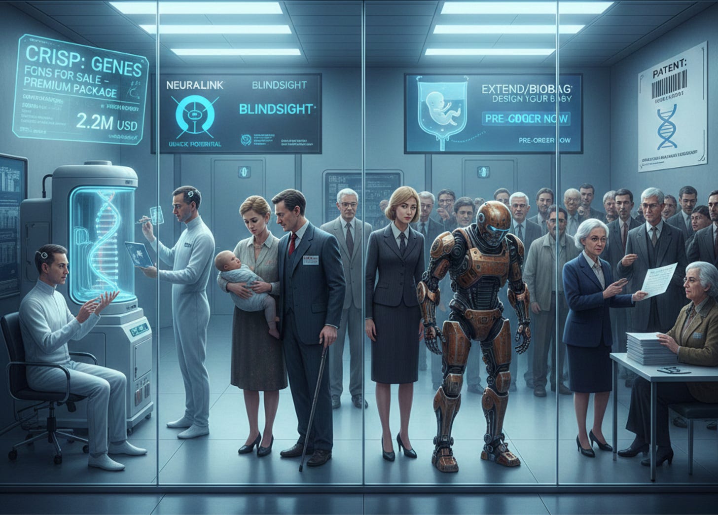 Dostęp do „lepszego ciała” (np. szybszej nauki dzięki chipowi w mózgu czy odporności na choroby dzięki edycji genów) stanie się symbolem bogactwa. Społeczeństwo może podzielić się na lepszych i gorszych biologicznie.