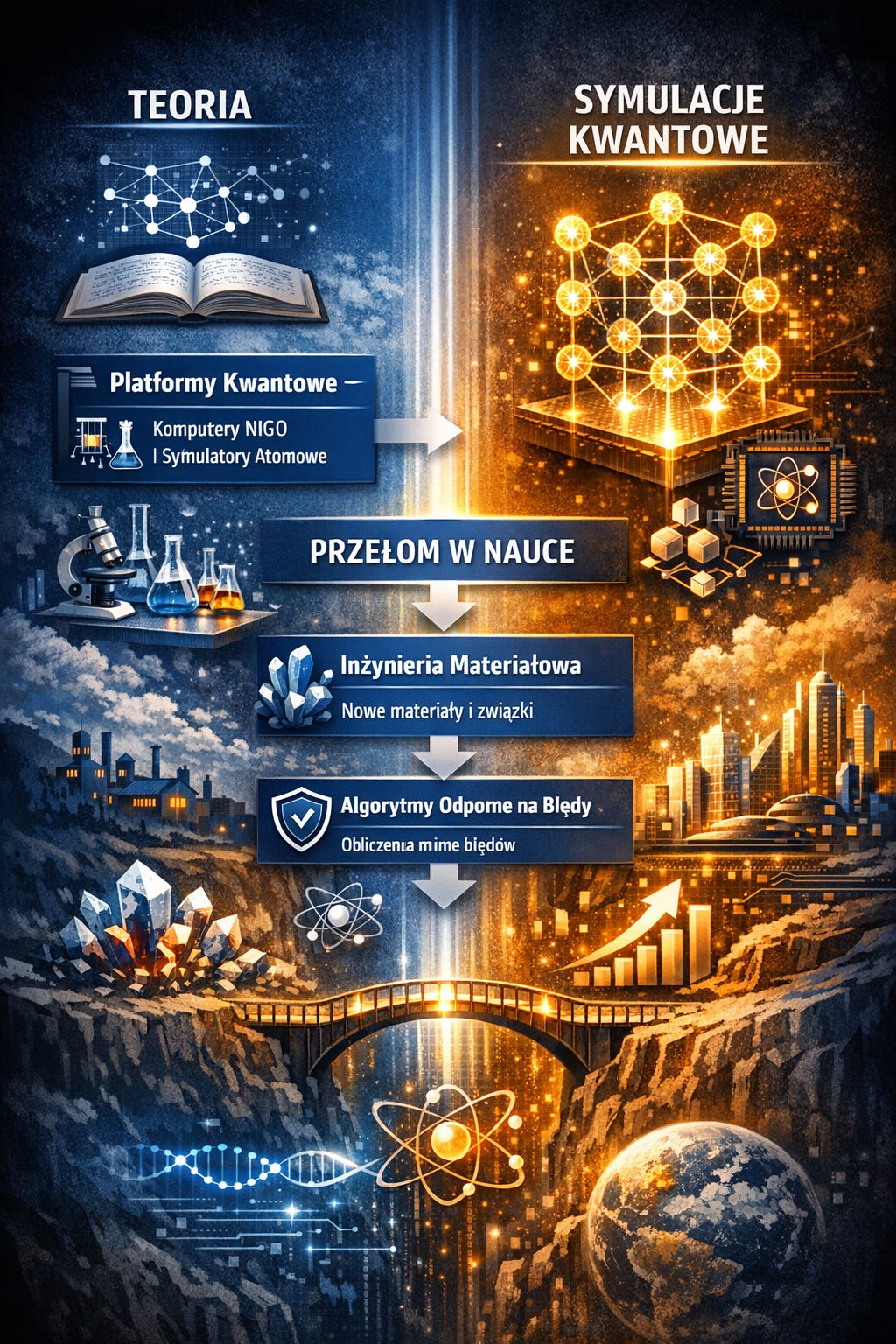 Pełna korekcja błędów lub jej zaawansowane formy umożliwią symulowanie materiałów i procesów, które dziś są poza zasięgiem zarówno klasycznych komputerów, jak i urządzeń NISQ.